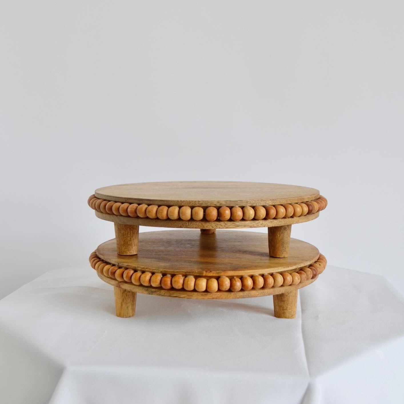Transform any event into a fun and happy occasion with our Beaded Wood Cake Stand!