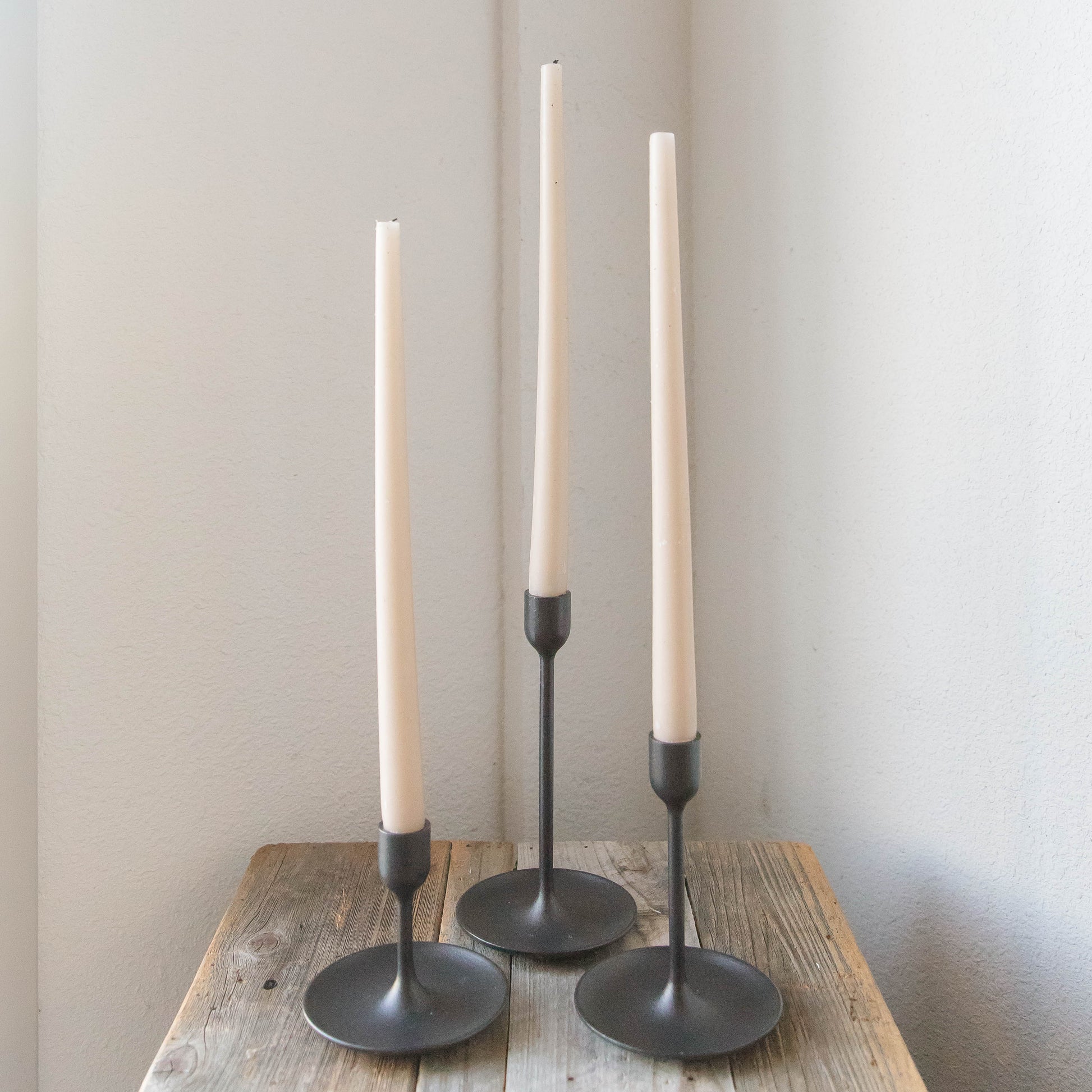 This Metal Cupped Candle Holder Trio is the perfect choice to add a touch of sophistication and elegance to any event. Crafted from metal with a black finish, the set includes 3 candle holders to create a striking display. For added safety and convenience, the set also includes an optional set of hurricane glass covers.