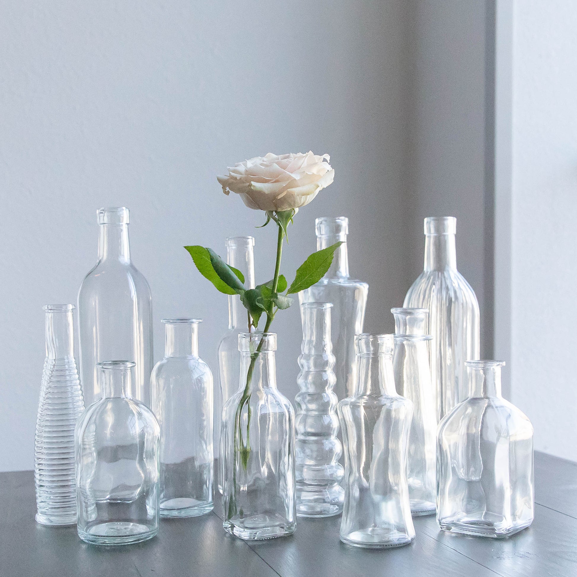This set of twelve clear glass bud vases is a versatile decoration for any occasion. Showcase a few sprigs of flowers or just let them stand alone - either way they make an elegant statement. The thick glass ensures durability throughout your event. Reserve a set and start decorating today!
