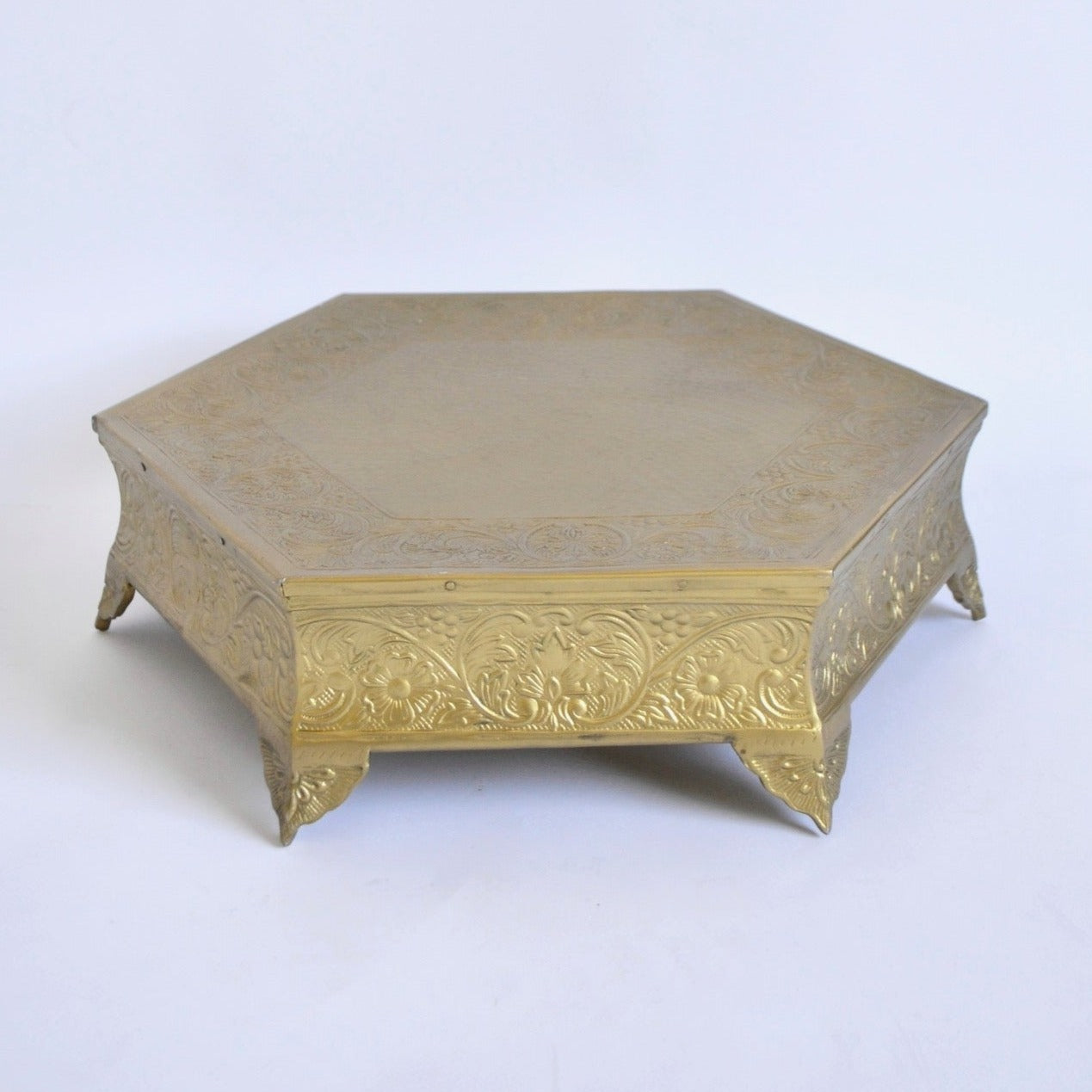 Add a touch of elegance to your special occasion with our gold drum cake stand. Its stunning design will make any gala or wedding cake a showstopper. Perfect for adding a touch of glamour to your event. 21'X18"