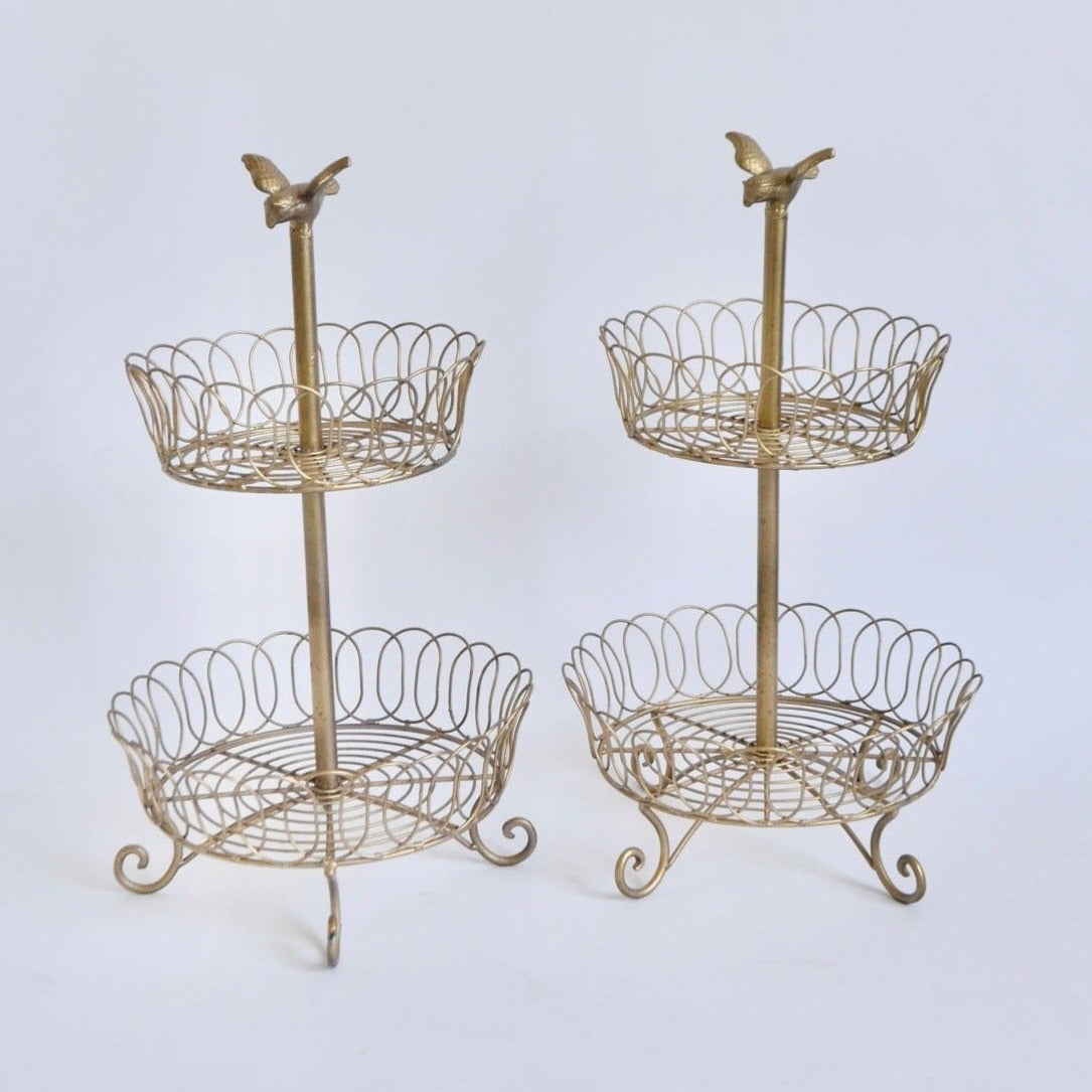 Introducing our gold Birdie basket cupcake stand! Put a whimsical touch on your next garden party and delight your guests with this fun cupcake display. Perfect for any event, it's sure to add a touch of charm. Rented individually.
