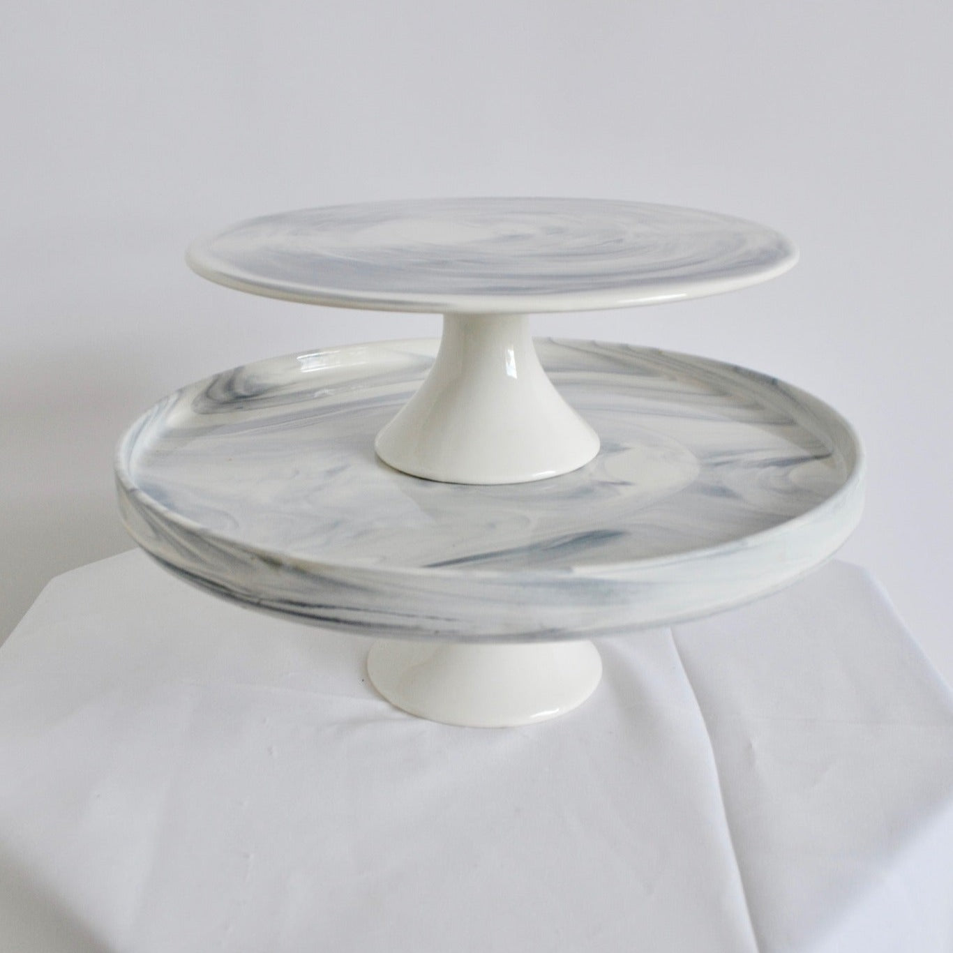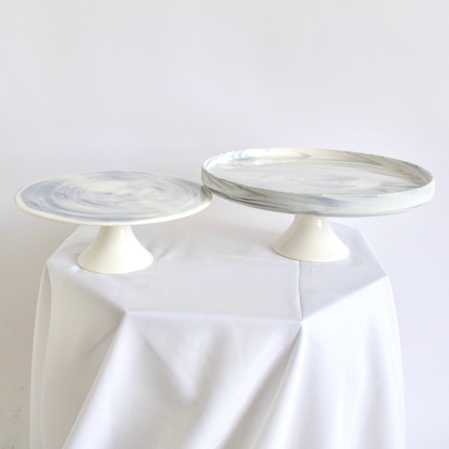 Add a pop of subtle color to your event with our blue and white marbled cake stands. Elevate your cakes and desserts with a touch of sophistication and style. Perfect for any occasion, big or small.