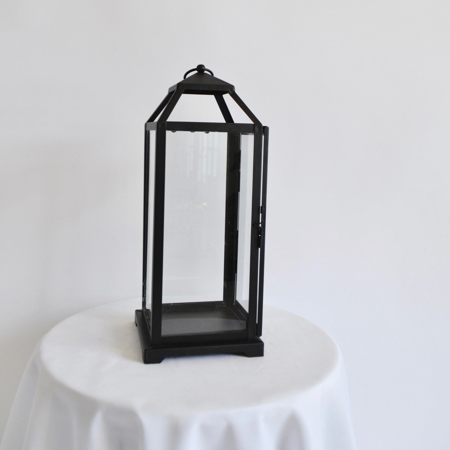 Add a touch of elegance to any event or wedding with this stunning black contemporary candle lantern. Made of high-quality iron and glass, it will surely be a head turner and create a warm and inviting atmosphere. 12" 14 available