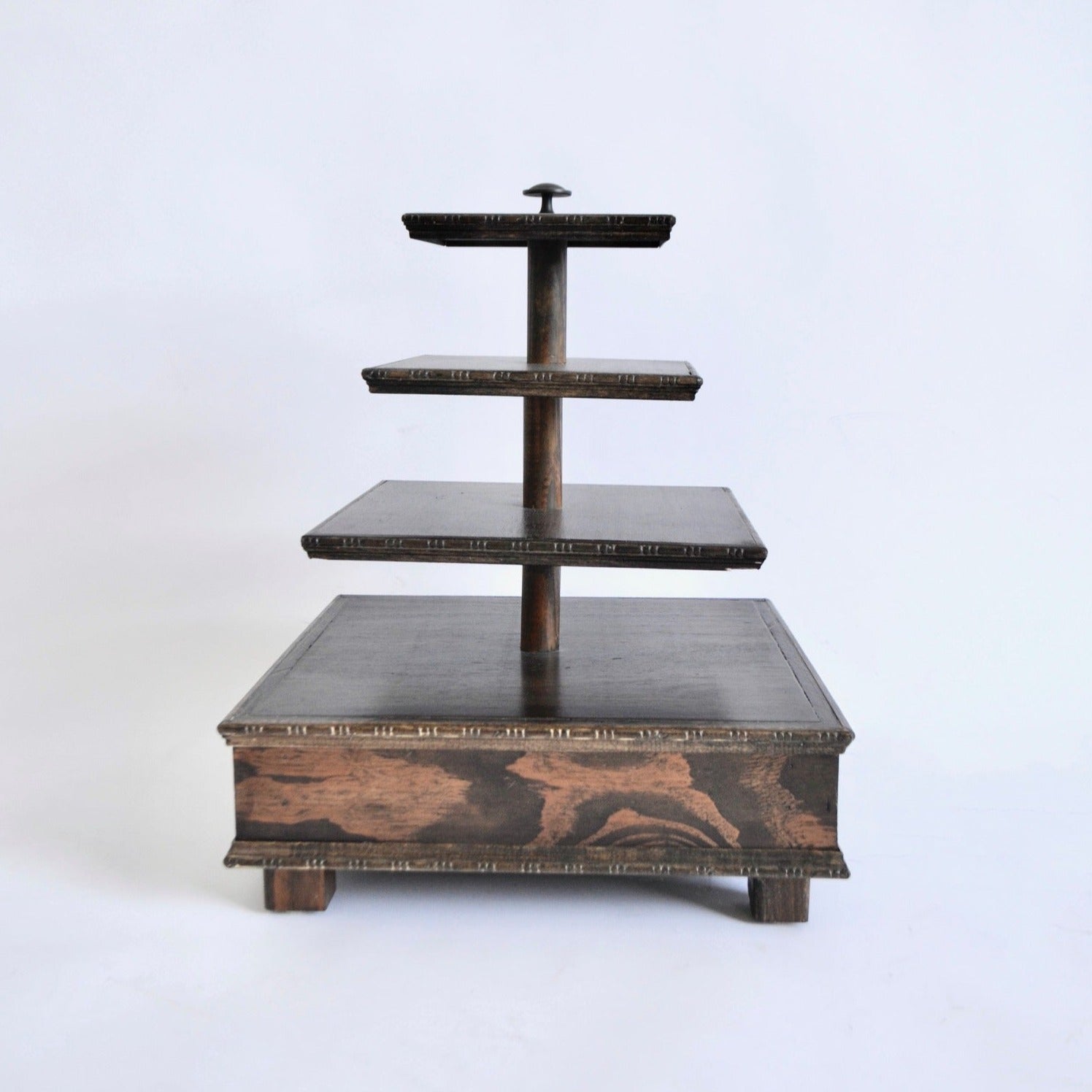 Add a touch of rustic charm to your next event with our wooden 3 tier cupcake tower. Perfect for showcasing delicious treats and making your guests smile with delight. Rent now and elevate your event to the next level!