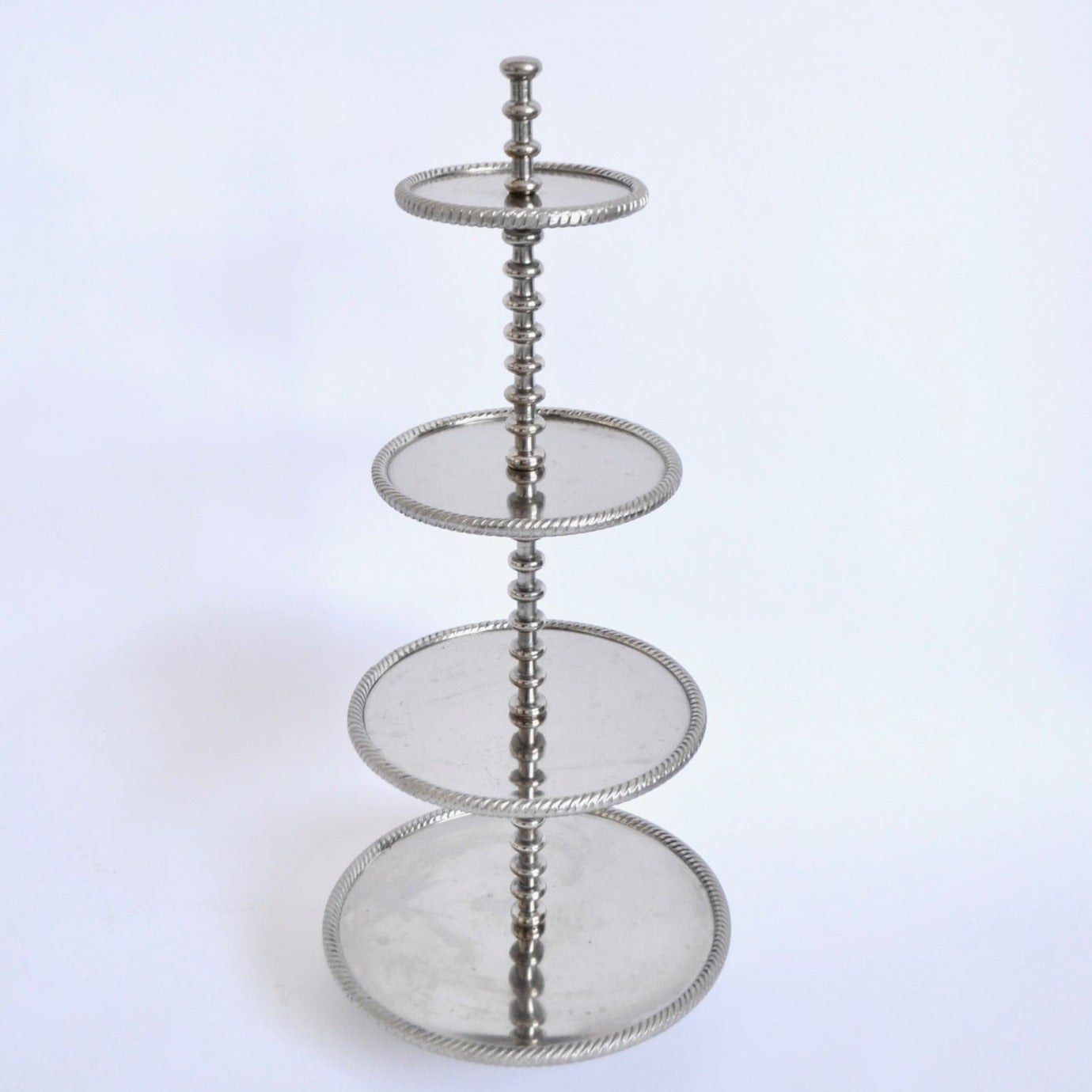4 tier silver metal serving tray