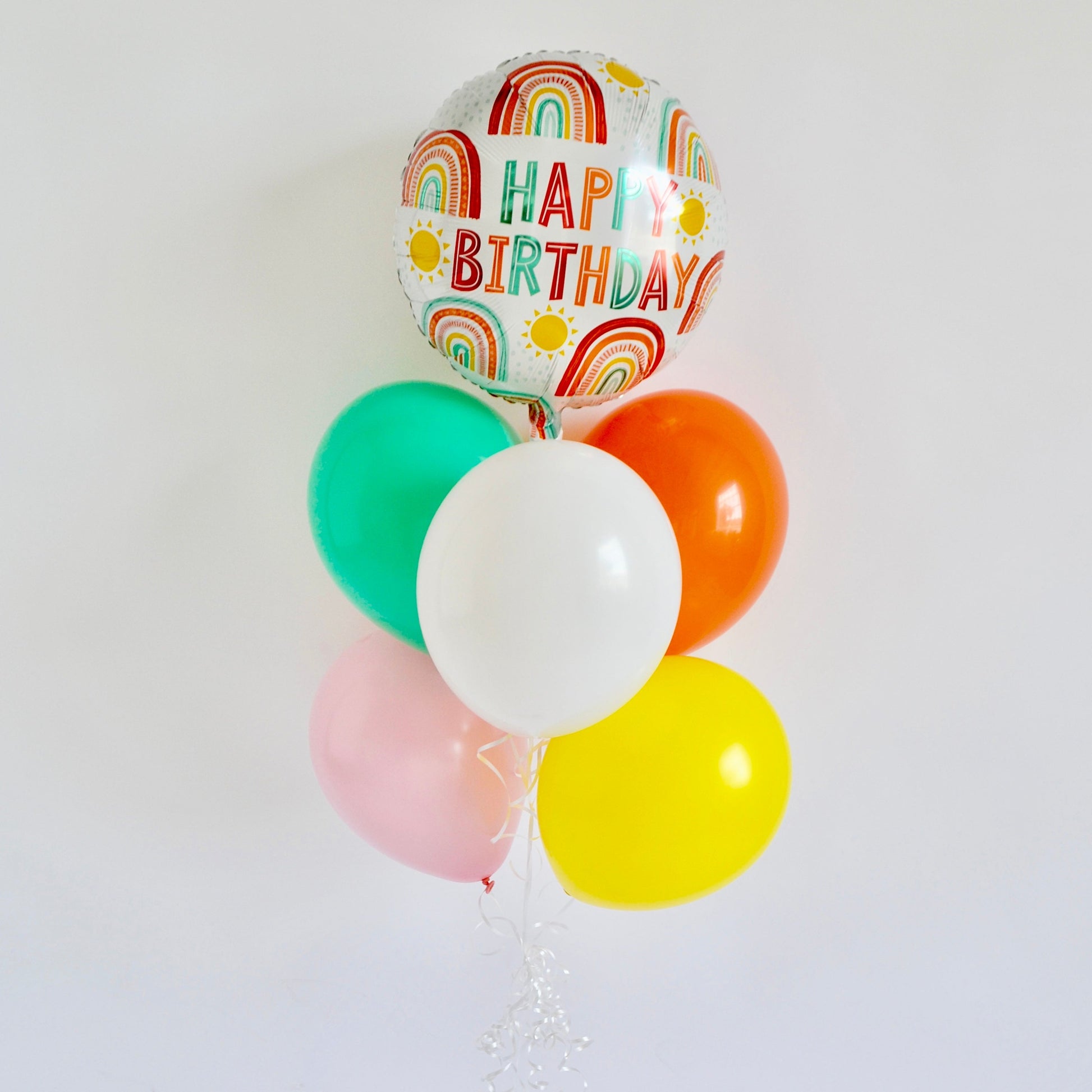 Celebrate any occasion with our E22 Balloon Bouquet! This popular bouquet includes 5 pom latex balloons in your choice of color, along with a special mylar message balloon. Bring happiness and joy to your event with this perfect addition!