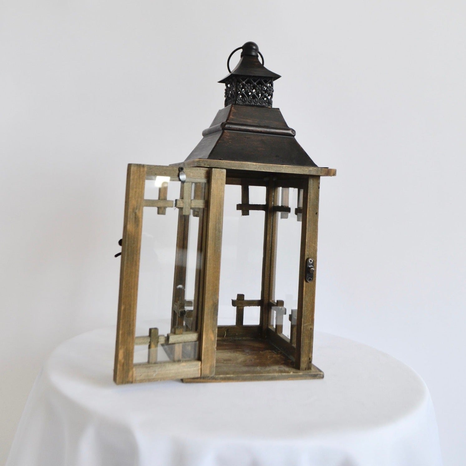 Add a rustic and elegant touch to any event with our wood lantern. The fine natural wood finish and design make for a beautiful ambiance. Perfect for weddings, parties, or any special occasion. 9" 9 available
